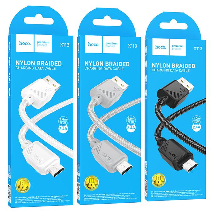X113 Beneficio, USB на Micro-USB зарядный дата кабель, ток до 2.4A, нейлоновая оплётка и коннекторы из PVC, длина – 1м