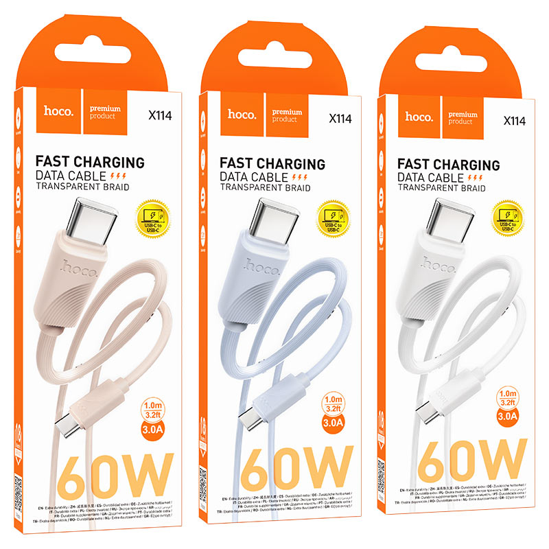 X114 Energy, Type-C на Type-C зарядный дата кабель, поддержка быстрой зарядки PD 60W, PVC оплётка, PVC коннекторы, длина – 1м