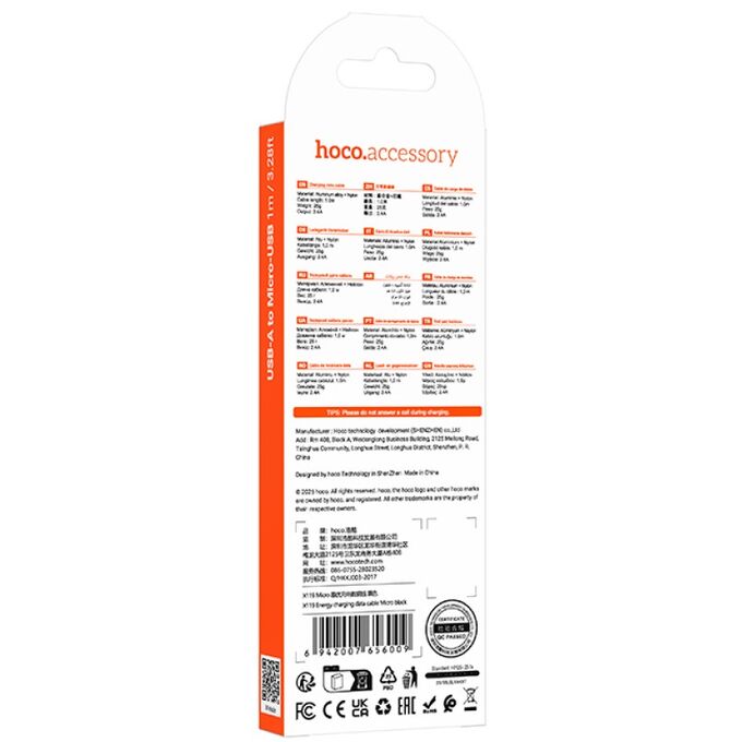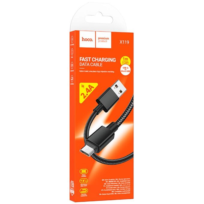 Кабель HOCO X119/ USB Micro/ 1m/ 2,4A/ Черный