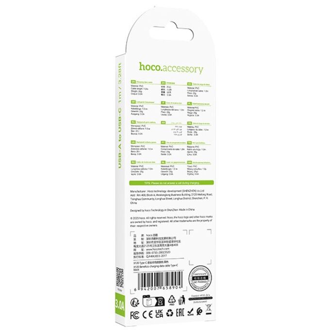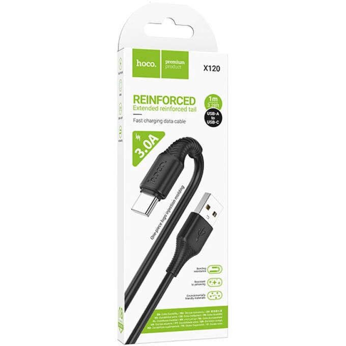 Кабель HOCO X120/ USB Type-C/ 1m/ 3A/ Черный