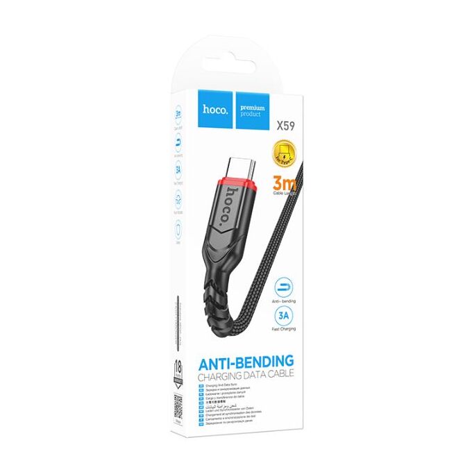 Кабель HOCO X59/ USB Type-C/ 3m/ 3A/ Нейлон/ Черный