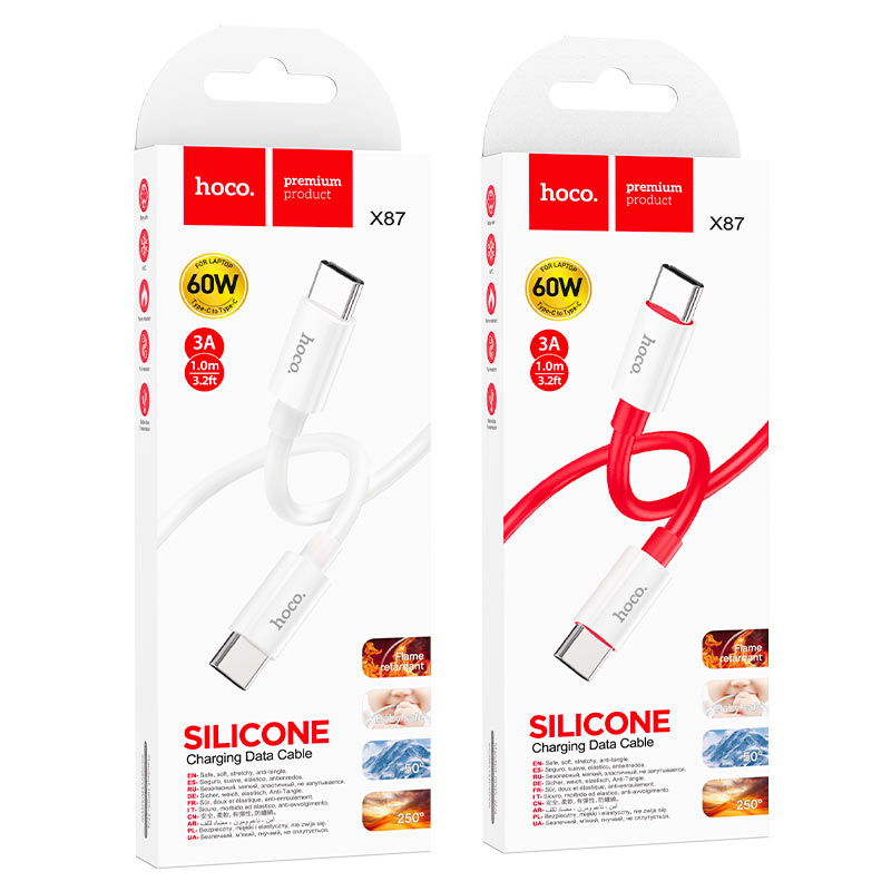 Кабель HOCO X87 Magic Type-C-Type-C 1.0м, 3,0А, 60Вт, QC3.0, PD3.0 красный