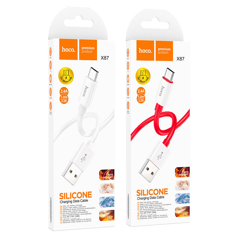 X87 Magic, кабель для зарядки и передачи данных USB на Micro-USB, ток до 2.4A, силиконовая оплётка, длина – 1м
