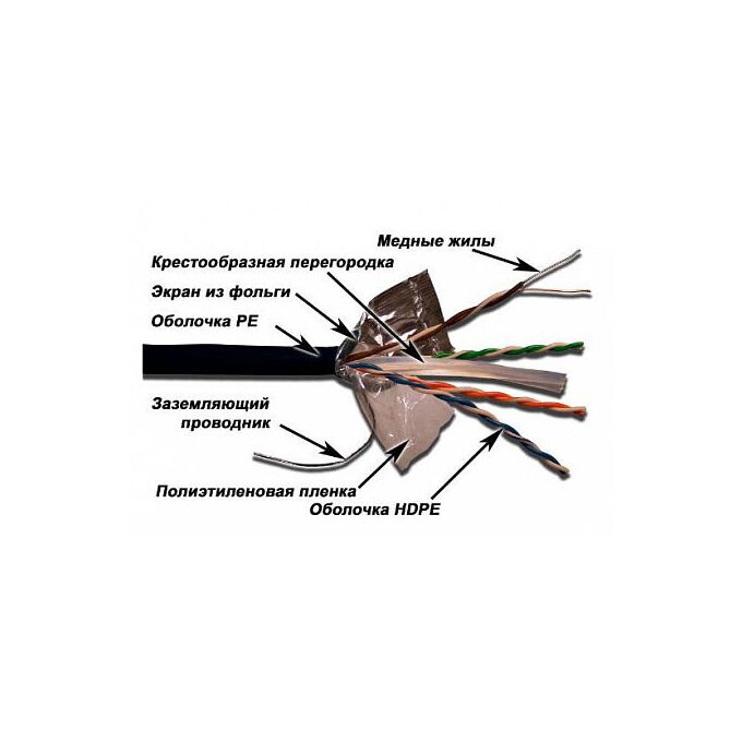 Кабель информационный Lanmaster LAN-6EFTP-WP-OUT кат.6 F/UTP общий экран 4X2X24AWG PVC внешний 305м черный