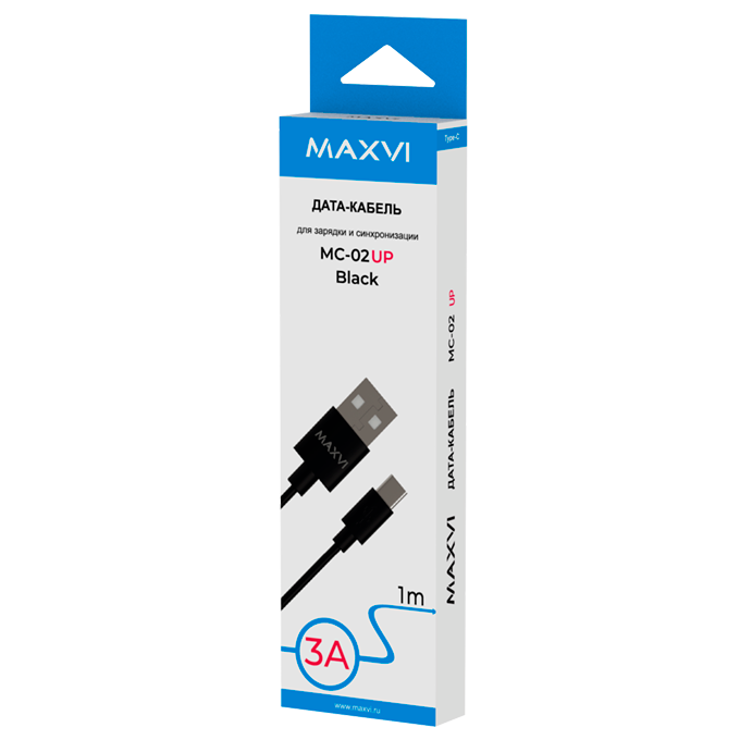 Кабель Maxvi MC-02 UP black USB-A-Typee-C, 3A
