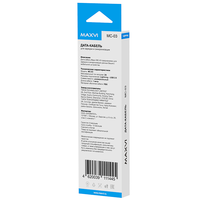 Кабель Maxvi MC-03 white USB-A-Lightning