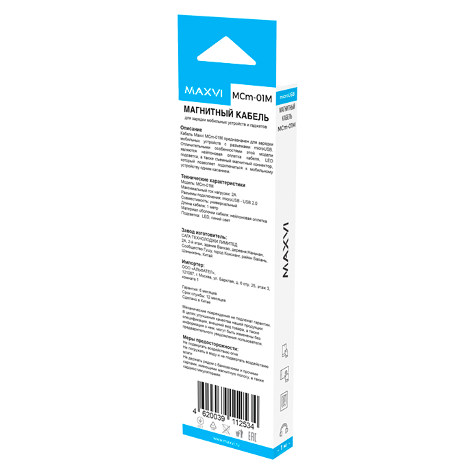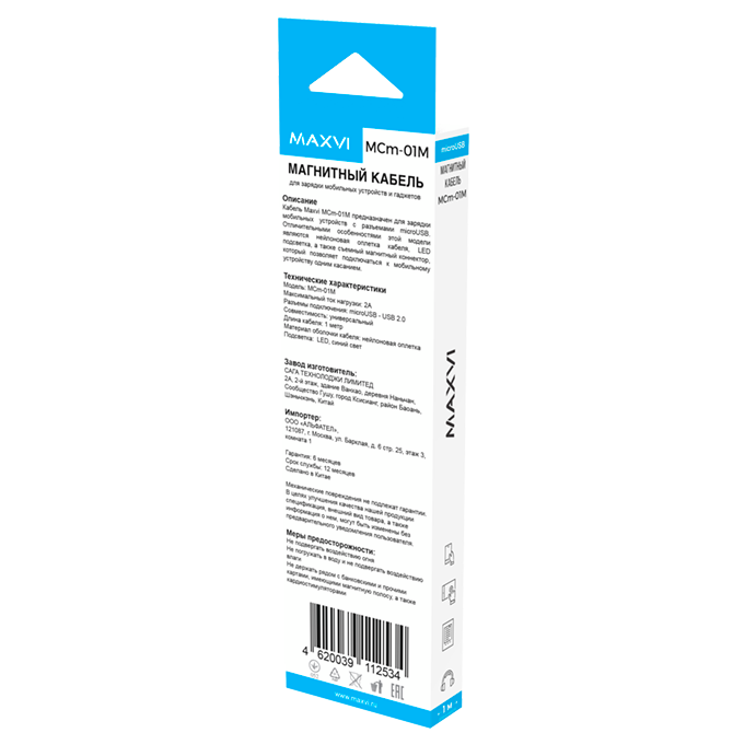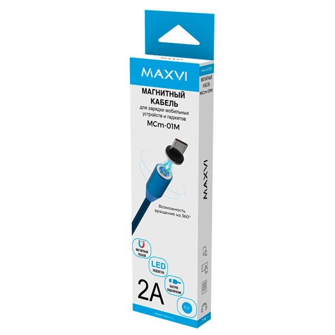 Кабель Maxvi MCm-01M blue USB-A-microUSB, 2A