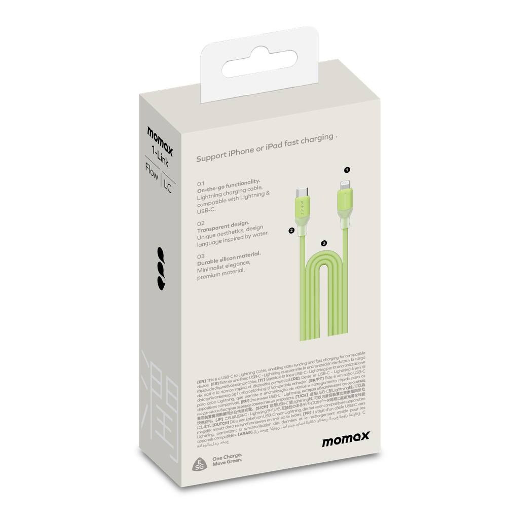 Кабель Momax 1-Link DL53G USB-C/Lightning 1.2м Mint Green