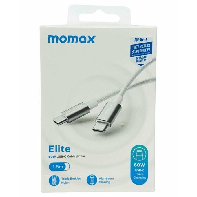 Кабель Momax Elite DC30W USB-C/USB-C 1.5м White