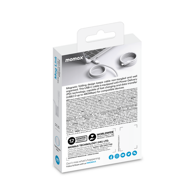 Кабель Momax Mag.Link DC35W USB-C/USB-C 1м White