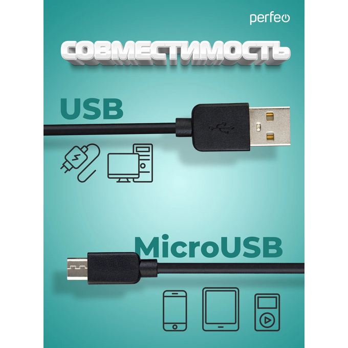 Кабель PERFEO U4010 USB2.0 A вилка - Micro USB вилка, черный, длина 2м, бокс