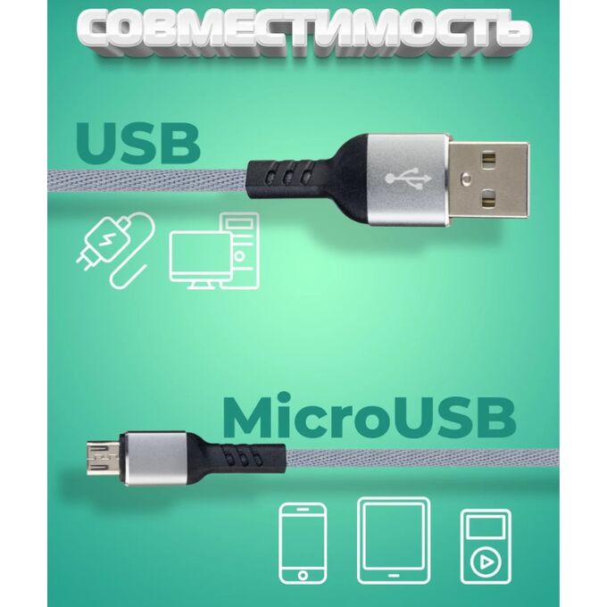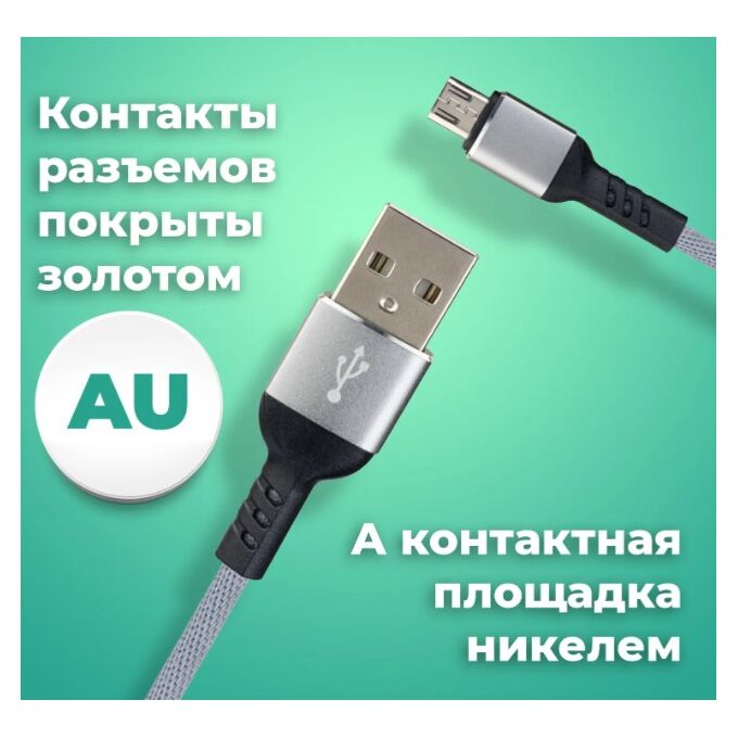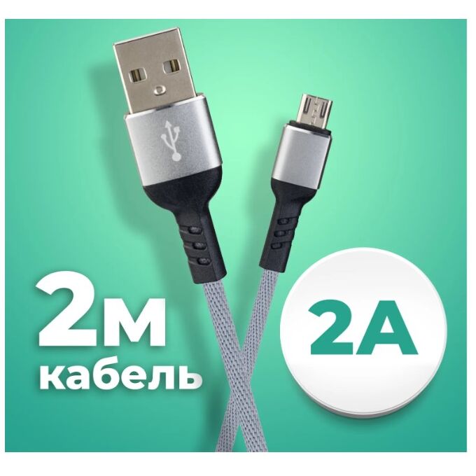Кабель PERFEO U4809 USB2.0 A вилка - Micro USB вилка, серый, длина 2м, бокс