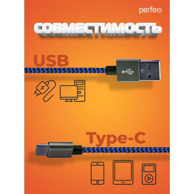Технические характеристики Perfeo USB2.0 A вилка - USB Type-C вилка, U4903