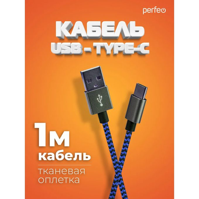 Кабель Perfeo U4903 USB2.0 A вилка - USB Type-C вилка черно-синий 1м