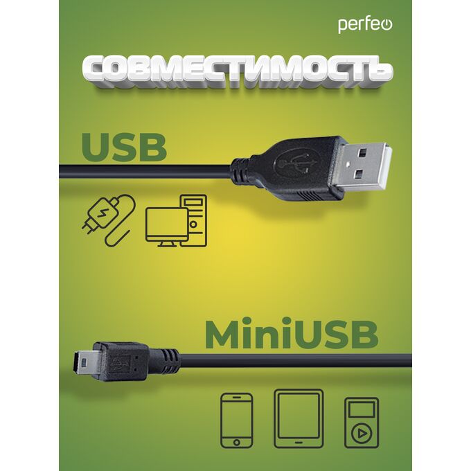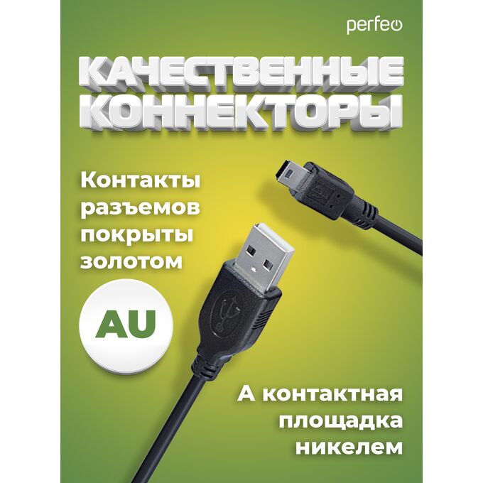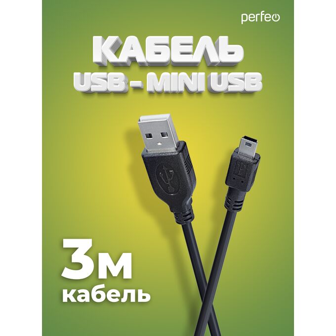 Кабель PERFEO USB2.0 A вилка - Mini USB вилка, длина 3 м. (U4303)