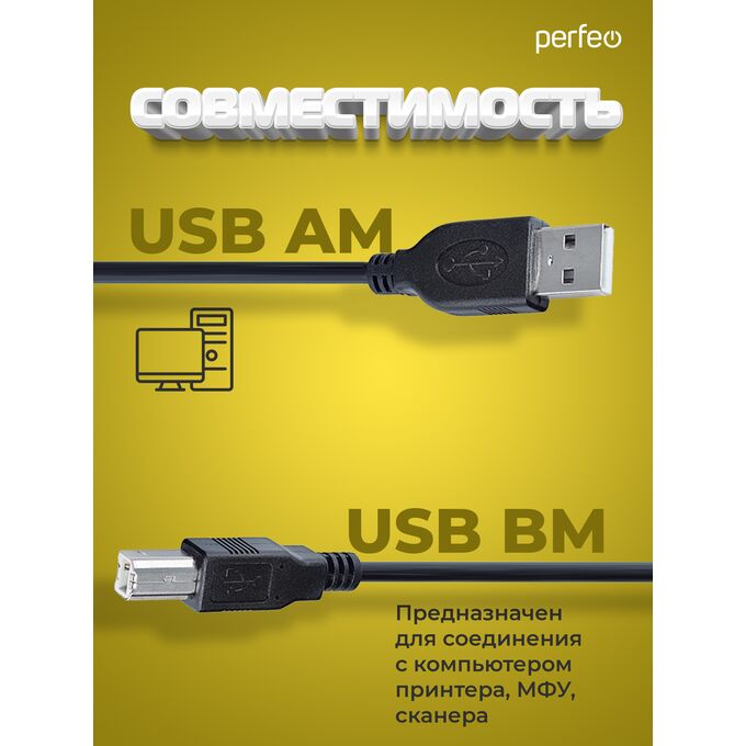 Кабель PERFEO USB2.0 A вилка - В вилка, длина 1 м. (U4101)
