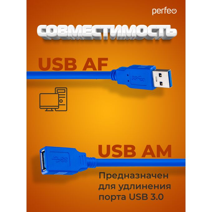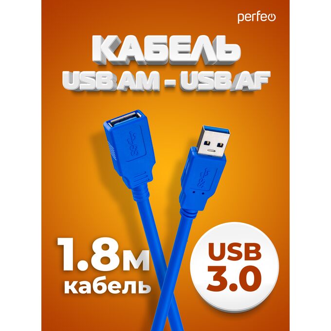 Кабель PERFEO USB3.0 A вилка - A розетка, длина 1,8 м. (U4603)