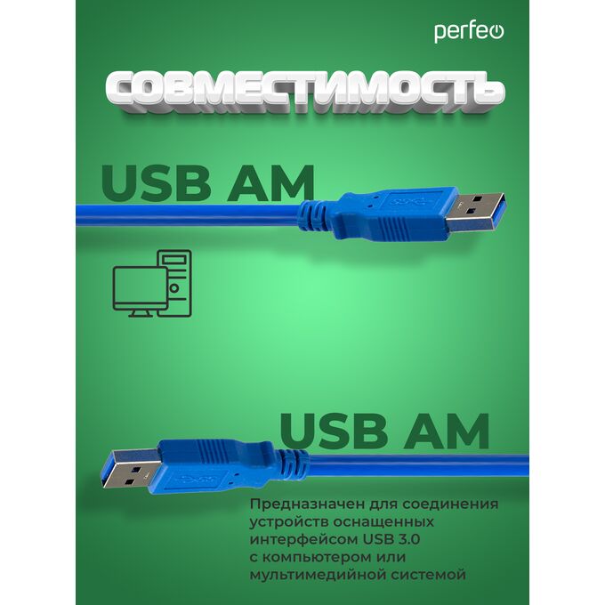 Кабель PERFEO USB3.0 A вилка - A вилка, длина 1,8 м. (U4601)