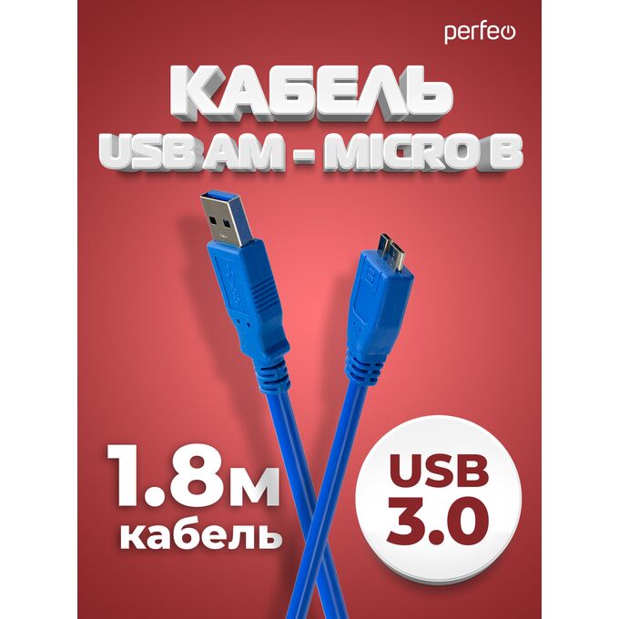 Кабель PERFEO USB3.0 A вилка - Micro B вилка, длина 1,8 м. (U4602)