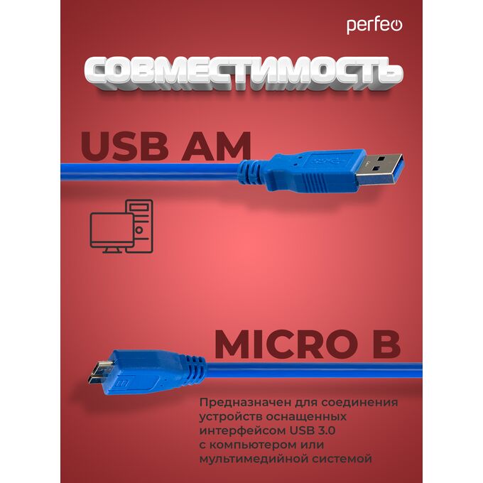 USB кабель 3.0 USB А(m) – micro B(m) от Perfeo – кабель для подключения и передачи данных с устройств, которые поддерживают такой вид сопряжения. Обычно этот кабель активно используется для внешних винчестеров (HDD) при подключении мобильного шасси с жестким диском к компьютеру. Кабель выполнен из высококачественных материалов – позолоченные контакты для надежной передачи данных, медные проводники не боятся многократного изгиба, плотная ПВХ оплетка. Кабель выполнен с полным соответствием спецификации USB 3.0 и способен передавать информацию на максимальной скорости. Идеально подходит для высокоскоростных внешних дисков.