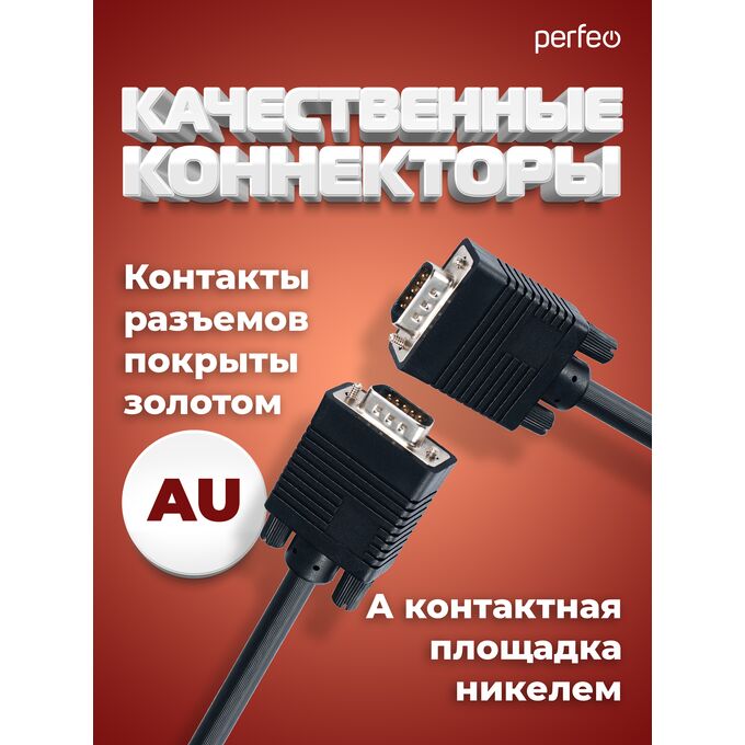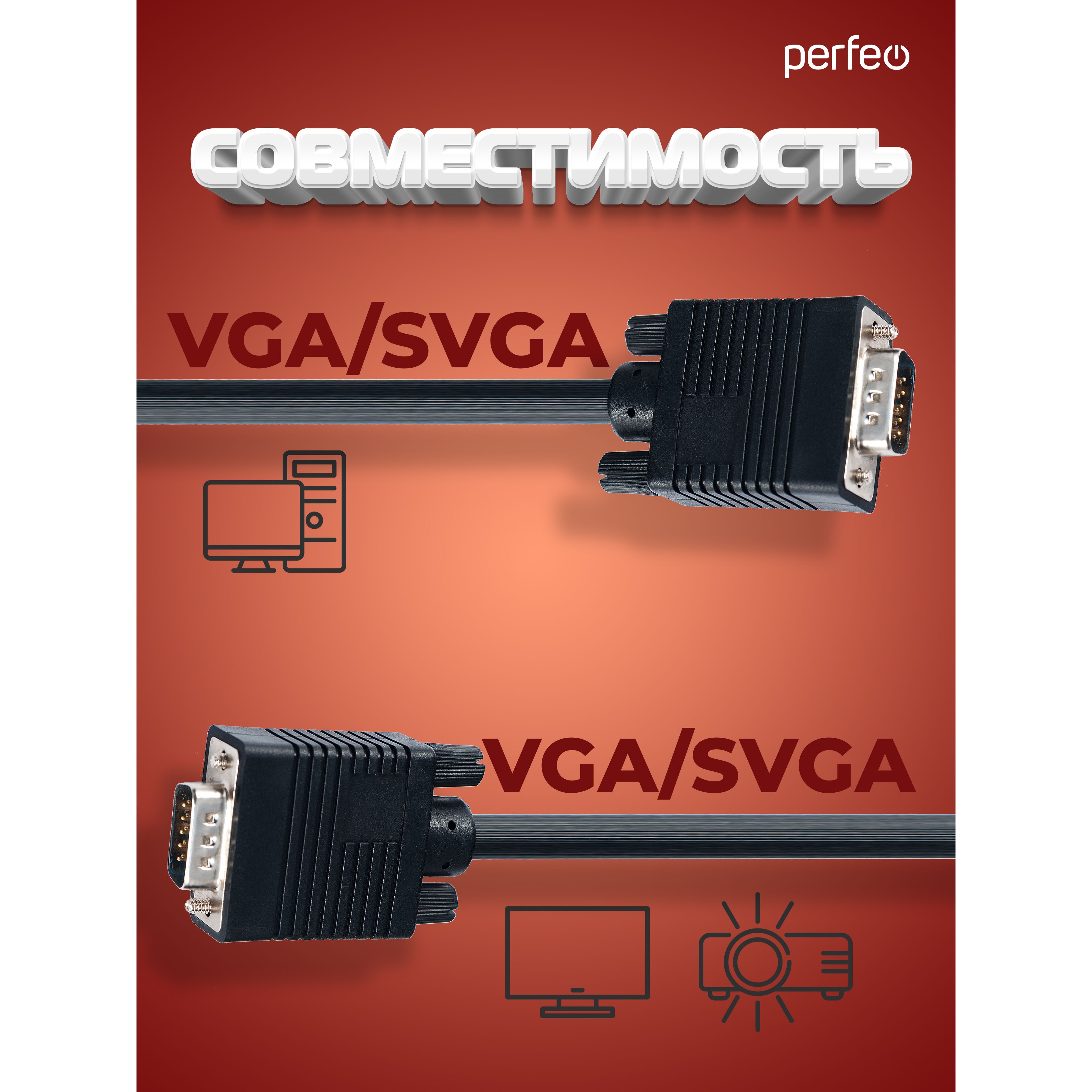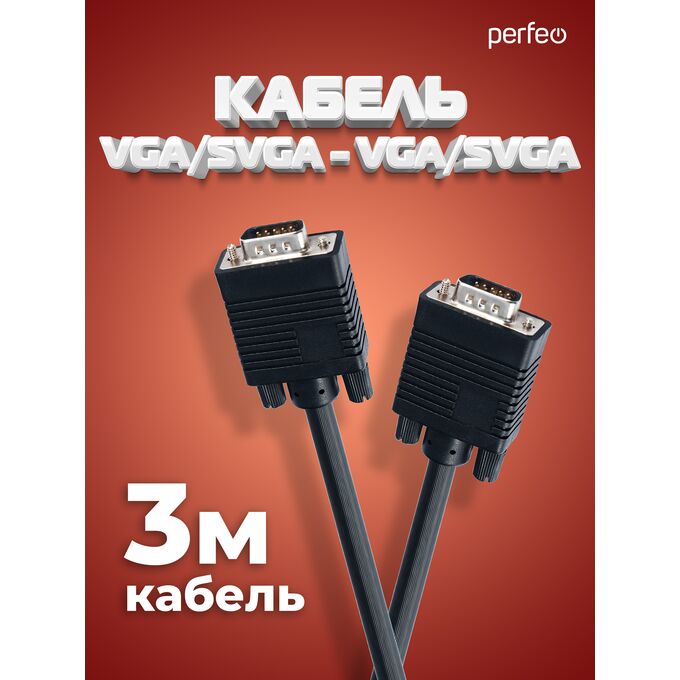 Кабель PERFEO VGA/SVGA вилка - VGA/SVGA вилка, с ф/фильтрами, длина 3 м. (V7002)