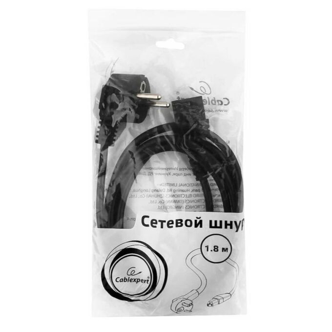 Кабель питания Cablexpert 1.8м, Schuko- C13, 6А, черный, с зазем. PC-186