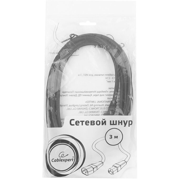 Кабель питания Cablexpert PC-189-1-3M сист.блок-монитор C13-C14 3x1кв.мм 3м черный