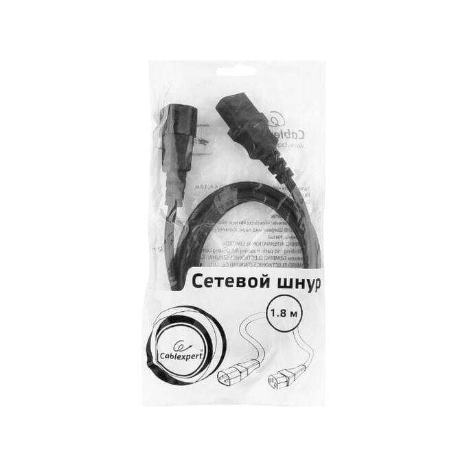 Кабель питания Cablexpert PC-189 сист.блок-монитор C13-C14 6А 1.8м черный