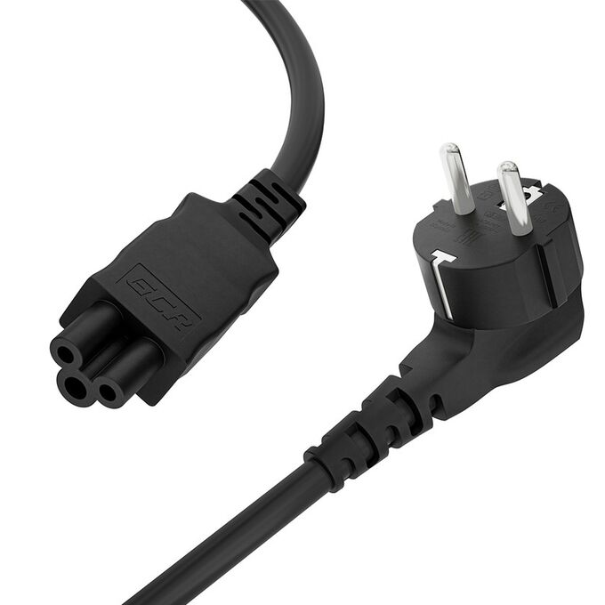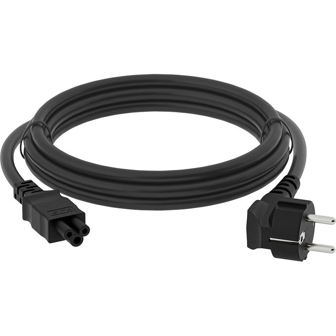 Кабель питания применяется для подключения к сети 220 Вольт блоков питания ноутбуков, проекторов и других периферийных устройств, имеющих соответствующий разъём . С одной стороны кабель имеет вилку стандарта CEE 7/7 (Schuko) с заземляющим контактом, с другой ‒ трех контактный разъем типа IEC C5, в обиходе известный как «микки-маус».