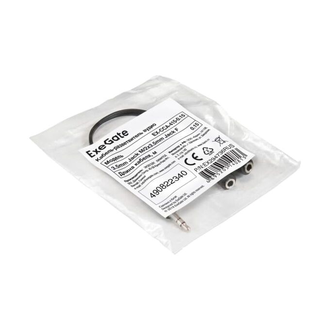 Кабель-разветвитель аудио ExeGate EX-CCA-415-0.15 EX294736RUS 3.5mm Jack M/2x3.5mm Jack F 0,15м