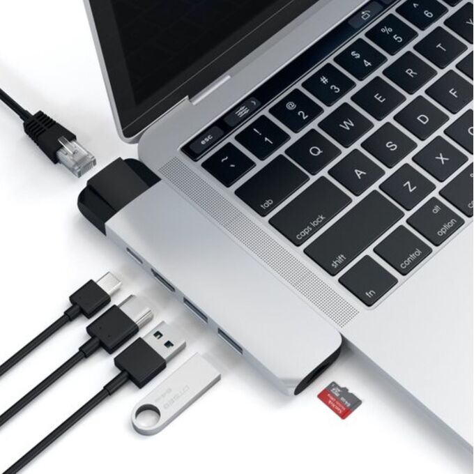 Кабель Satechi Aluminum ST-TCPHES Type-C Pro Hub Adapter with Ethernet 4K HDMI Silver