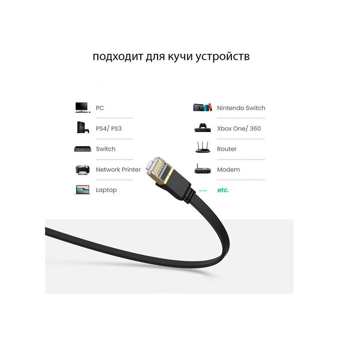 Кабель UGREEN NW106 (11266) Cat 7 U/FTP Lan Cable Flat Design. Длина: 15м. Цвет: черный