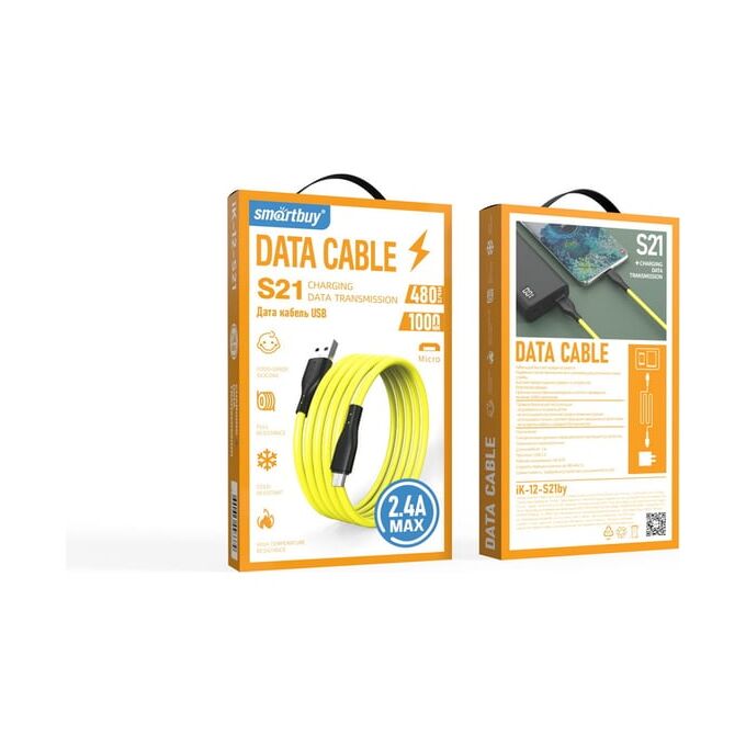 Кабель Smartbuy iK-12-S21by MicroUSB, 2.4А, сил, 1м желтый