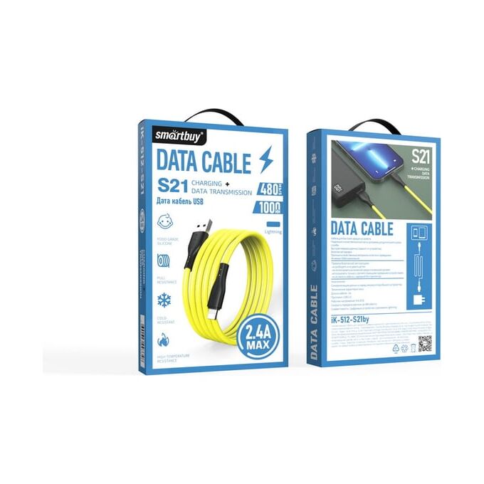 Кабель Smartbuy iK-512-S21by Lightning, 2.4А, сил, 1м желтый