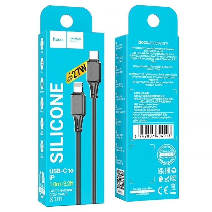 Кабель Type-C - Apple lightning Hoco X101 Assistant PD 27W 100см 3A (black) (240145)