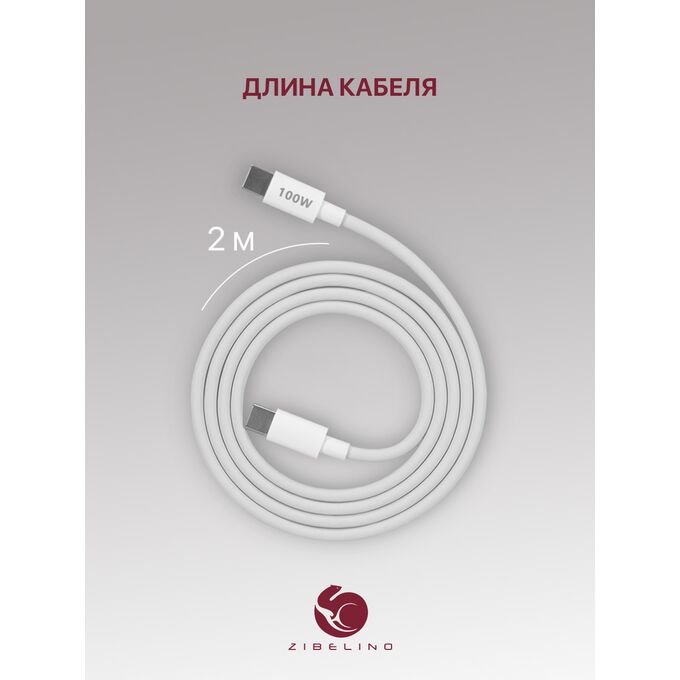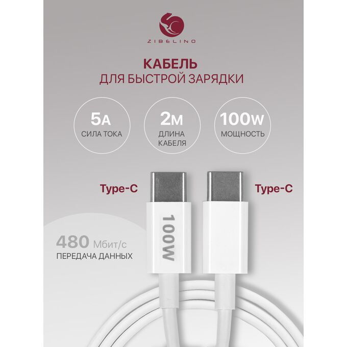 Кабель Type-C-Type-C для быстрой зарядки (мощностью 100W ) для передачи данных телефона (сила тока 5A ) 2 метра, белый (Тайп си)