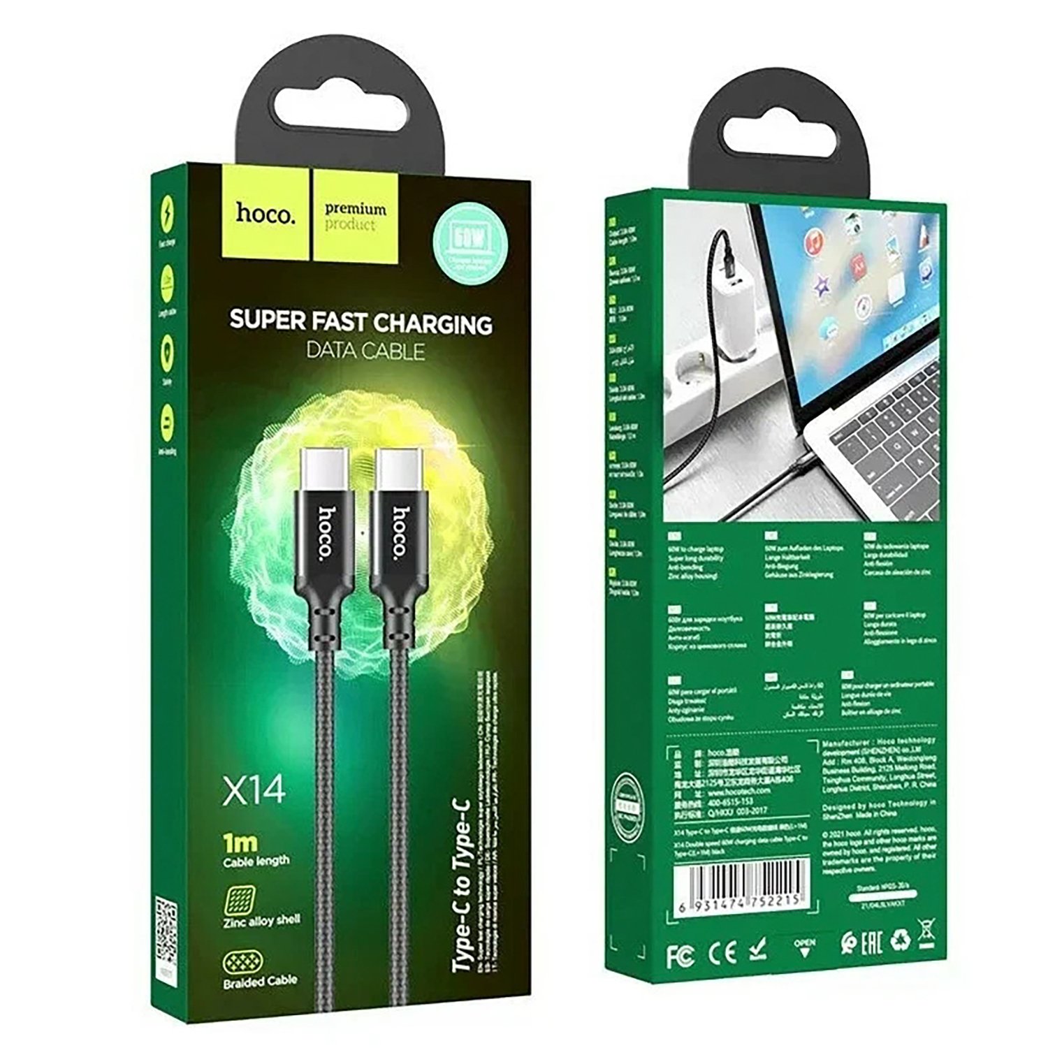 Кабель Type-C - Type-C Hoco X14 Double speed 60W 100см 3A (black) (202546)
