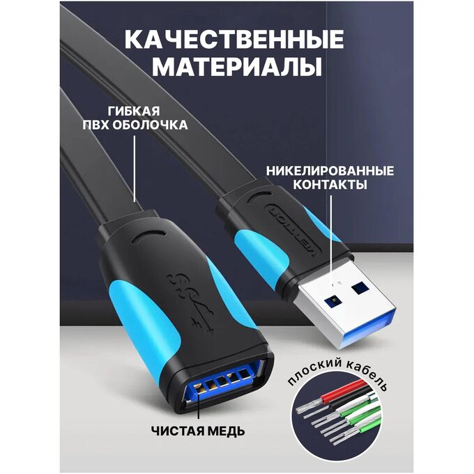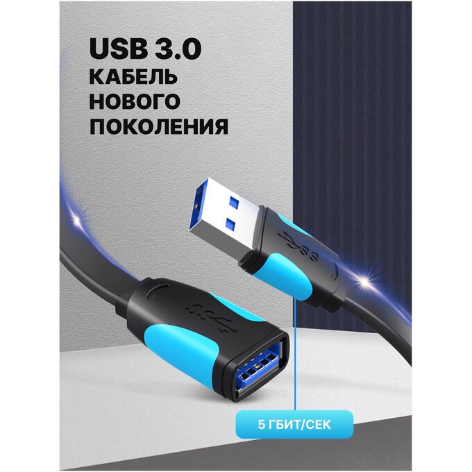 Кабель удлинитель Vention VAS-A13-B050 USB 3.0 AM/AF 0.5м плоский