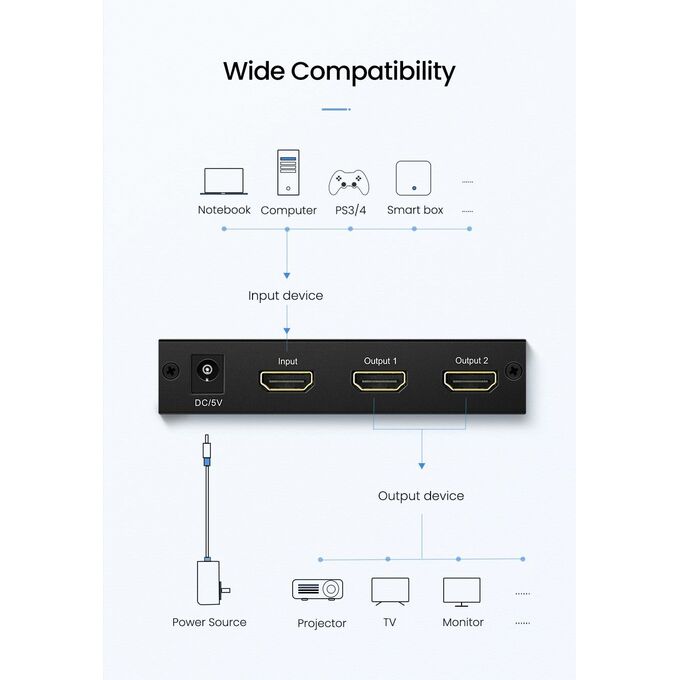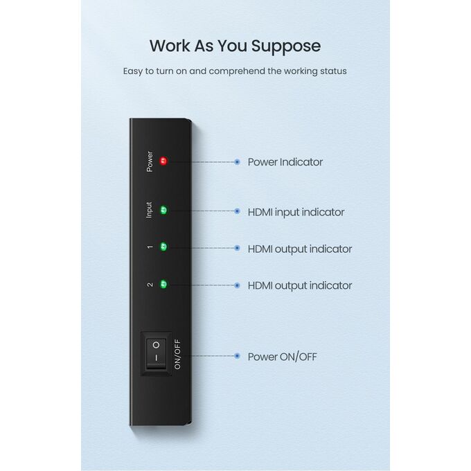 Кабель UGREEN 40201 (40201EU) HDMI 1x2 Splitter with 5V 2A DC power adapter Black