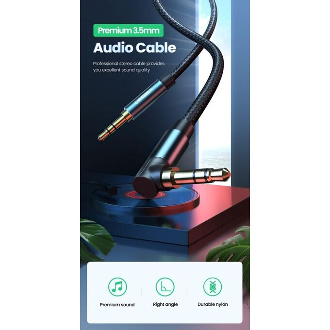 Кабель UGREEN AV112 60180 3.5mm Male to 3.5mm Male Cable Gold Plated Metal Case with Braid 1.5m Blue Black