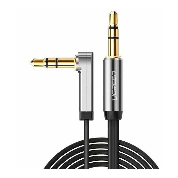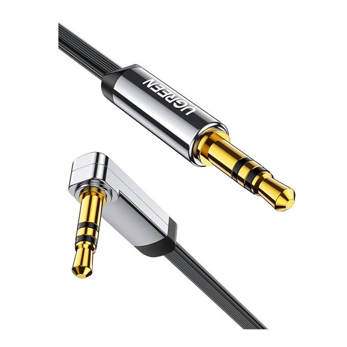 Кабель UGREEN AV119 10728 3.5mm Male to 3.5mm Male Straigth to angle flat Cable 3m Black