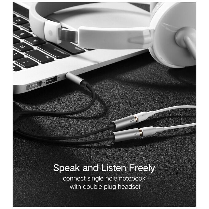 Кабель UGREEN AV141 30619 3.5mm male to 2 Female Audio Cable Aluminum Case 20cm Black