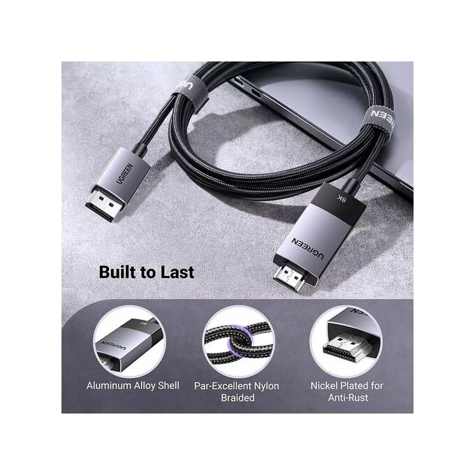 Однонаправленный кабель DisplayPort-HDMI: Кабель UGREEN DP-HDMI позволяет подключать устройства с DP (например, ПК, ноутбук или графические карты) к монитору, проектору, HDTV для передачи аудио- и видеосигнала. Он поддерживает разрешение до 8K@60Hz и высокую частоту обновления (обратно совместим с 4K@120Hz), предлагая реалистичное 3D-изображение и плавный, без разрывов, погружающий опыт. Примечание: рекомендуется подключать источник DP напрямую к дисплею HDMI, чтобы избежать ошибок отображения, а не через док-станцию или хаб из-за аппаратных ограничений.