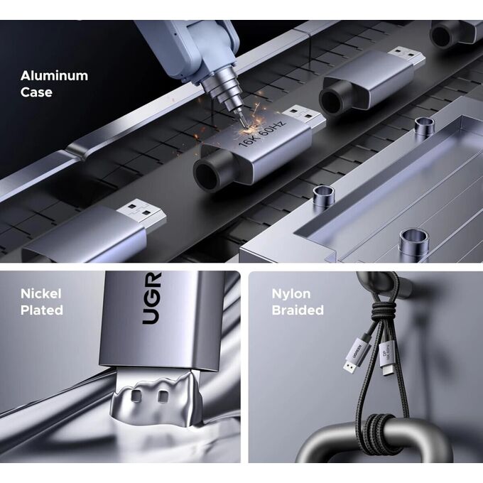 Кабель UGREEN DP131 (55567) DisplayPort Up to 16K 60Hz Cable 1m Gray