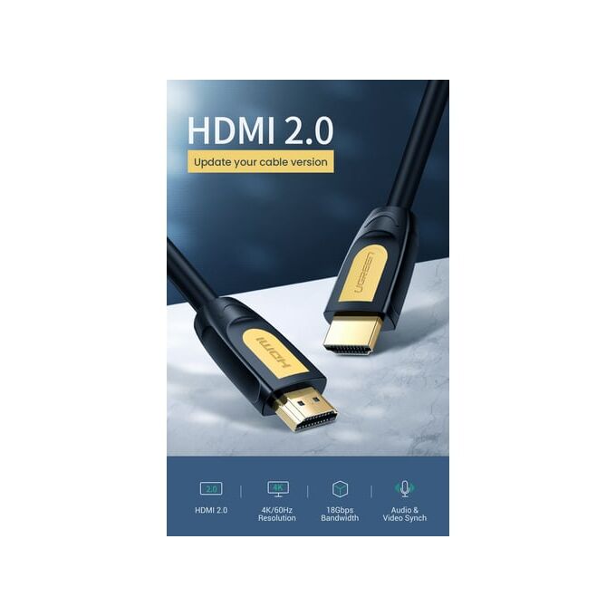 Кабель UGREEN HD101 10167 HDMI Male To Male Round Cable 5m Yellow/Black