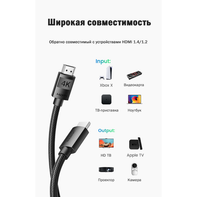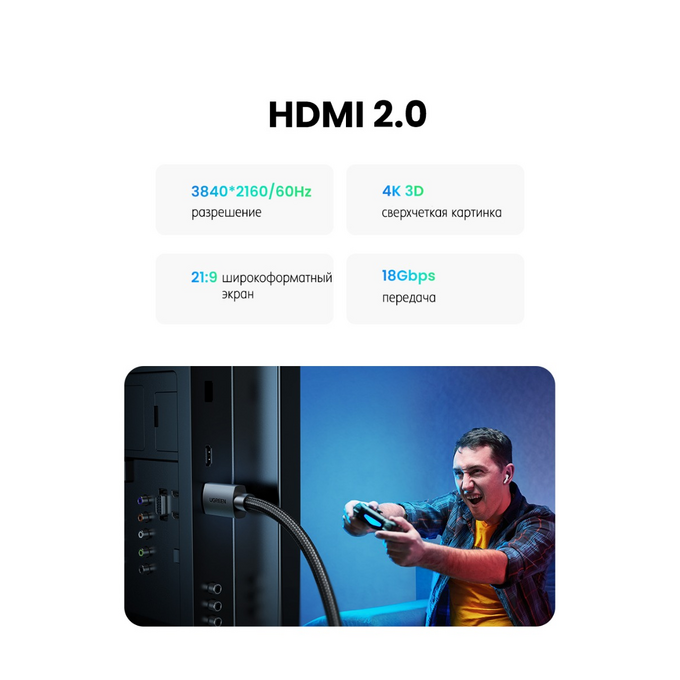 Кабель UGREEN HD119 40103 4K HDMI Cable Male to Male Braided 5m Black