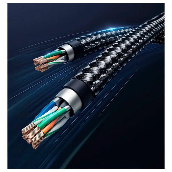 Кабель UGREEN NW153 80431 Cat8 CLASSⅠF/FTP Round Ethernet Cable With Braid 2m Black