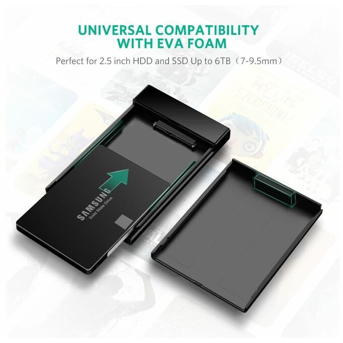 Кабель UGREEN US221 30848 2.5 Inch Hard Drive Box with Micro-B to USB-A 3.0 Cable Black