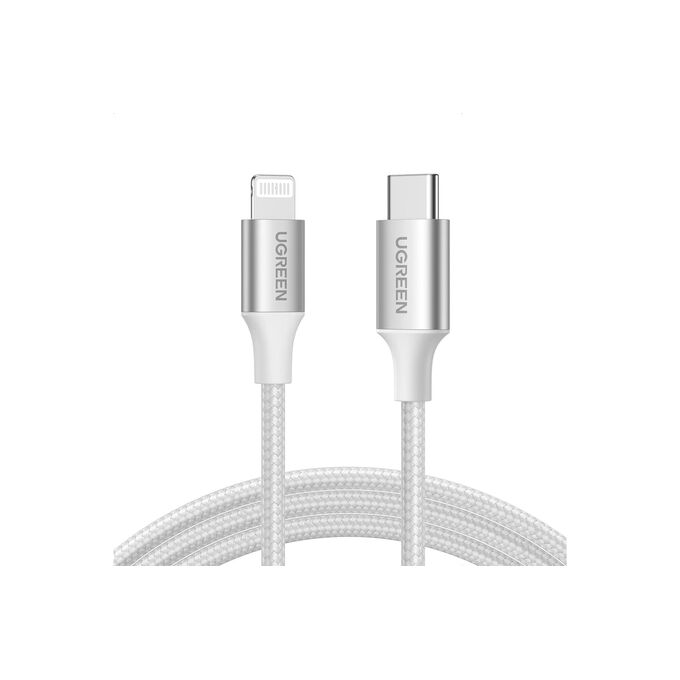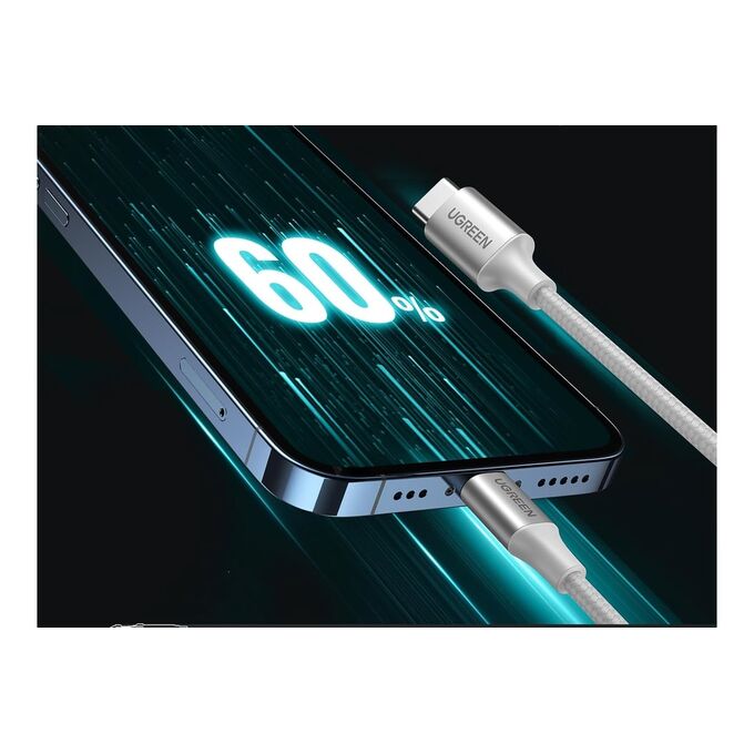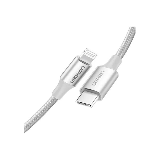 Кабель UGREEN US304 70523 USB-C to Lightning M/M Cable Aluminum Shell Braided 1m Silver