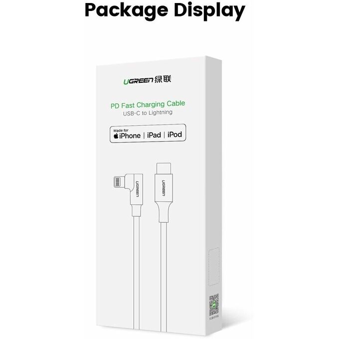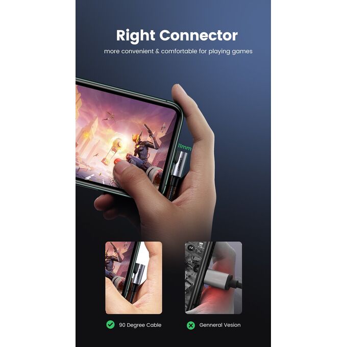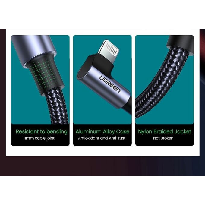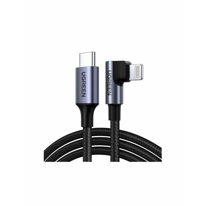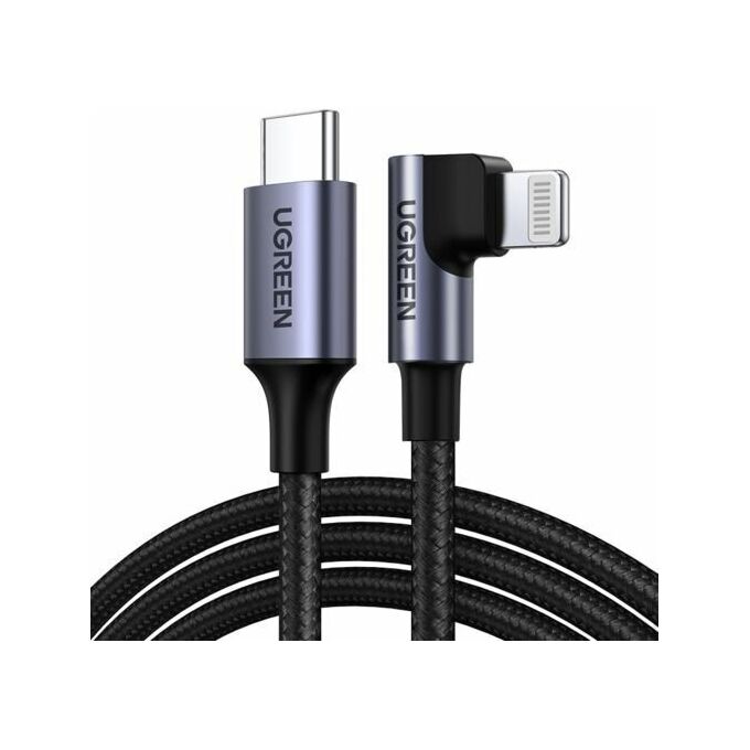 Кабель UGREEN US305 60764 USB-C to Lightning Angled Cable Aluminum Shell Braided 1.5m Gray Blac